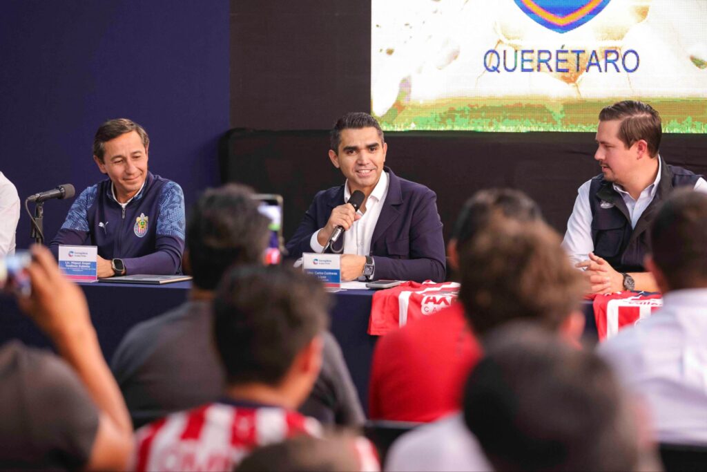 El jefe de Gabinete en el municipio de Corregidora, Carlos Contreras, en representación del alcalde Chepe Guerrero, acudió a la presentación de la apertura de la escuela oficial “Rebaño Chivas Querétaro” en Corregidora, la primera institución reconocida legalmente por Club Deportivo Guadalajara S.A. de C.V.