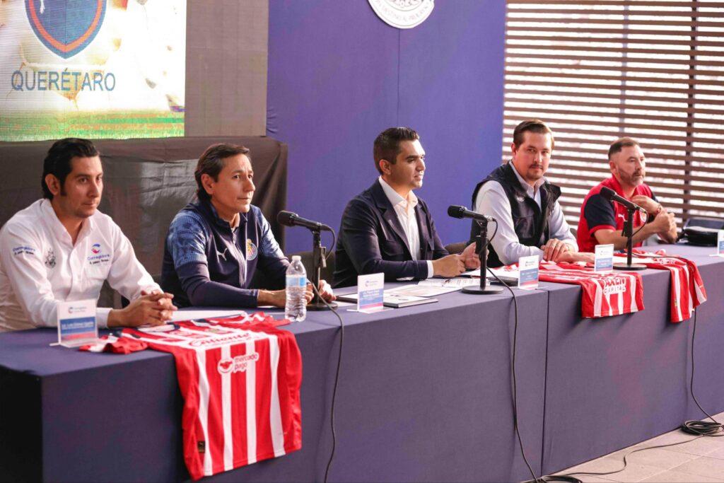 A la rueda de prensa también acompañaron: el titular de la Secretaría de Desarrollo Social del Municipio de Corregidora, Germán Borja; el director del Instituto Municipal del Deporte, Luis Gómez y el presidente de la Escuela Oficial “Rebaño Chivas Querétaro”, Juan Pablo Hernández.