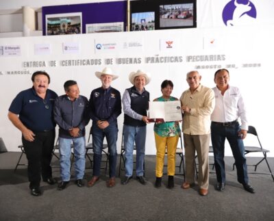 El secretario de Desarrollo Agropecuario, Rosendo Anaya, encabezó la entrega de siete certificados de Buenas Prácticas pecuarias y 31 reconocimientos…