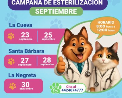 Corregidora, Qro.– El Instituto Municipal del Cuidado Animal de Corregidora anunció la continuidad de la campaña “Esteriliza y Protege”, con…
