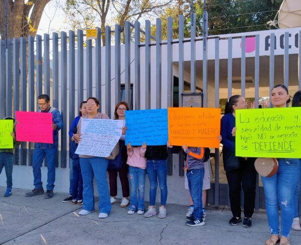 Padres de familia protestan contra el posible cierre de la Escuela Francisco I. Madero en el Centro Histórico de Querétaro