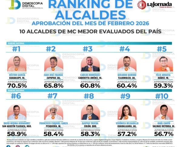 Gaspar Trueba se consolida en el Top 10 de Alcaldes de Movimiento Ciudadano a Nivel Nacional
