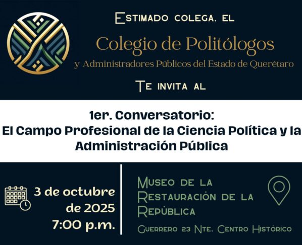 Querétaro, Qro 30 de Septiembre 2025 .— El Colegio de Politólogos y Administradores Públicos del Estado de Querétaro (CPAPEQ) anunció la realización de su primer conversatorio titulado “El Campo Profesional…
