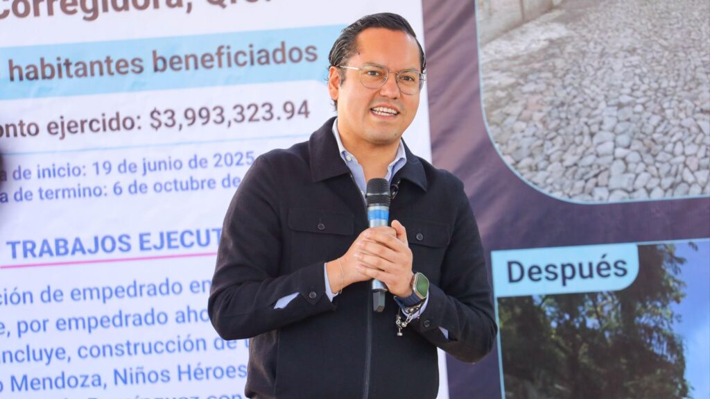 La titular de la Secretaría de Obras Públicas del Municipio de Corregidora, Viridiana Nava, detalló que los trabajos ejecutados fueron: la sustitución de empedrado empacado de tepetate por empedrado ahogado en mortero en las cuatro calles intervenidas, la renivelación de pozos de visita, construcción de banquetas y guarniciones, así como la colocación de pintura y señalización vertical.
