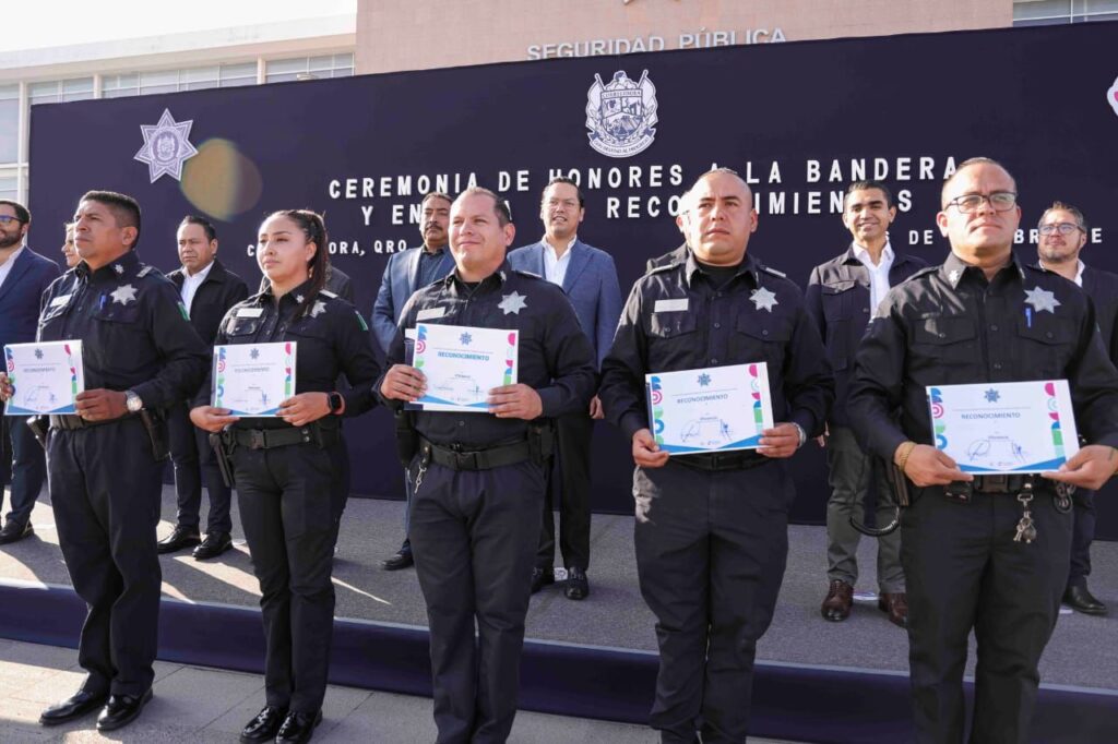 El presidente municipal de Corregidora, Chepe Guerrero, encabezó la entrega de 146 reconocimientos a 105 policías por haber realizado detenciones relevantes por delitos relacionados con temas de hidrocarburo, contra la salud y portación ilegal de armas de fuego, así como por destacada trayectoria, además de los certificados de 8 operadores de la línea 911.