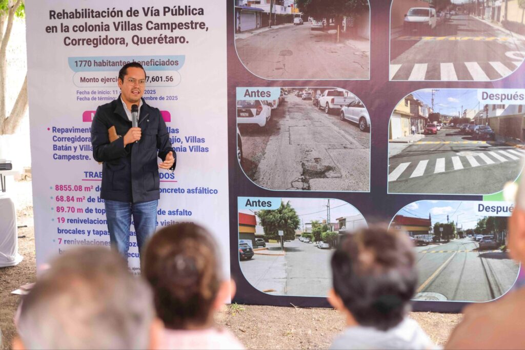 El presidente municipal de Corregidora, Chepe Guerrero, entregó la obra de rehabilitación de cinco calles en la colonia Villas Campestre, la cual beneficia de manera directa a mil 170 habitantes de la zona, gracias a una inversión cercana a cinco millones de pesos.