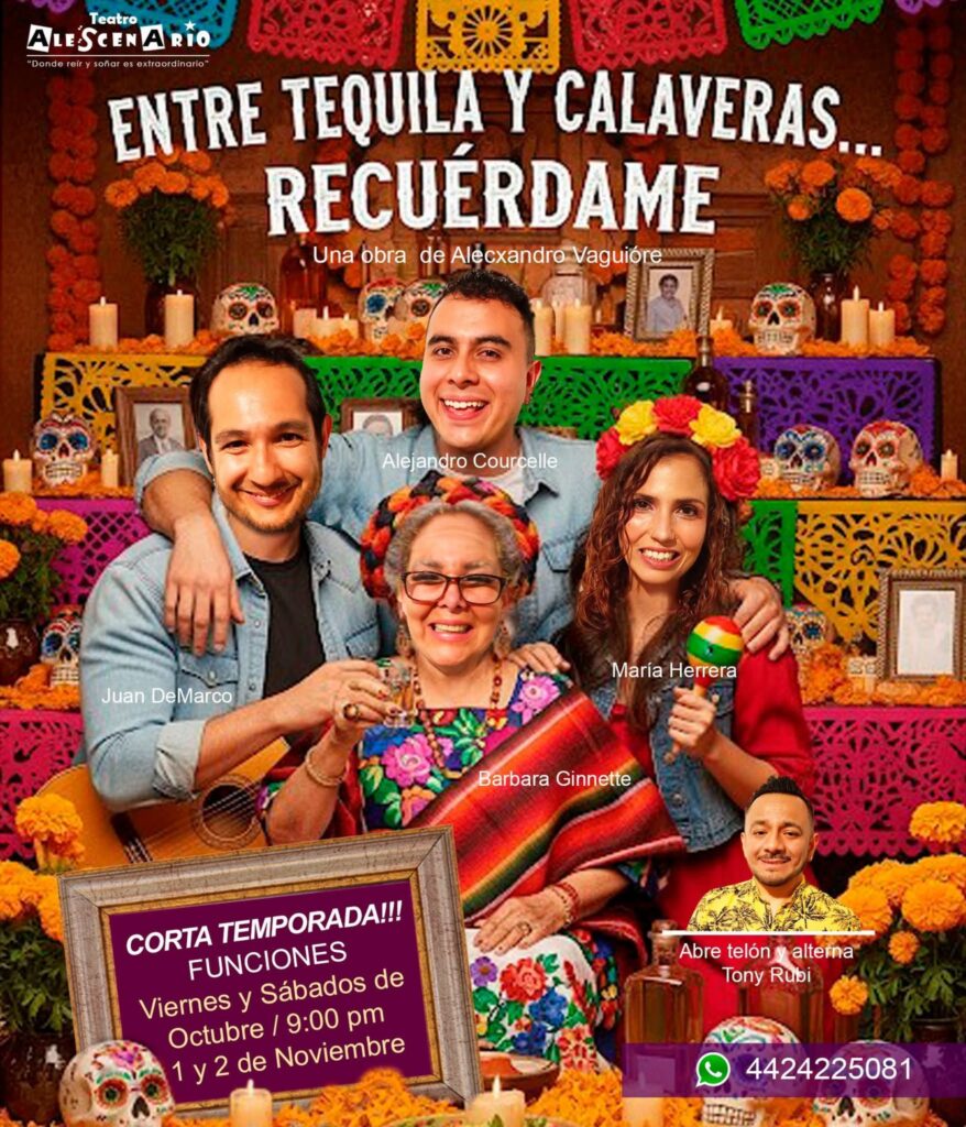 El teatro AlesenArio, prepara una celebración de risas, tradiciones y recuerdos para honrar a nuestros seres queridos.Querétaro, Qro.— El Teatro AlescenArio anuncia con orgullo el estreno de la obra “Entre Tequila y Calaveras… Recuérdame”, una puesta en escena que combina humor, tradición y un mensaje entrañable sobre la importancia de recordar a quienes ya no están físicamente con nosotros, pero viven siempre en nuestros corazones.