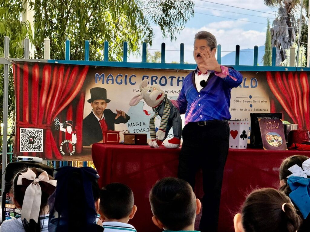El espectáculo contó además con la participación especial del mago colombiano David Pérez y del mago queretano Adrián Guerrero, quienes se unieron al esfuerzo solidario para multiplicar la alegría entre los pequeños.