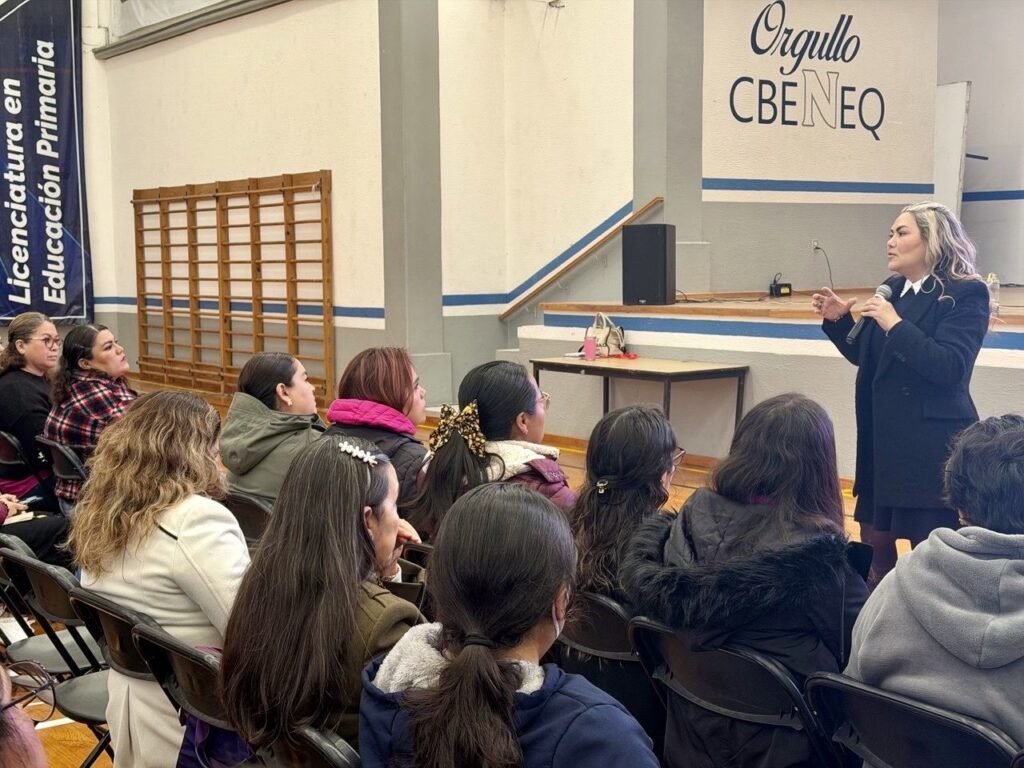 La coordinadora general de la Unidad de Servicios para la Educación Básica en el Estado de Querétaro (USEBEQ), Irene Quintanar Mejía, encabezó los trabajos académicos deltaller “Atención deestudiantesconDiscapacidad yTrastorno del Espectro Autista (TEA) con enfoque de inclusión”, al que asistieron 100 docentes de preescolar y primaria, en la Centenaria y Benemérita Escuela Normal del Estado (CBENEQ) “Andrés Balvanera”.
