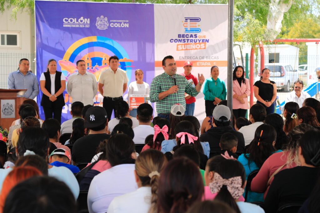 El Presidente Municipal de Colón, Gaspar Trueba Moncada, destacó la importancia de la educación como el camino al éxito durante la ceremonia de entrega de becas a estudiantes de niveles de educación básica, bachillerato y profesional.
