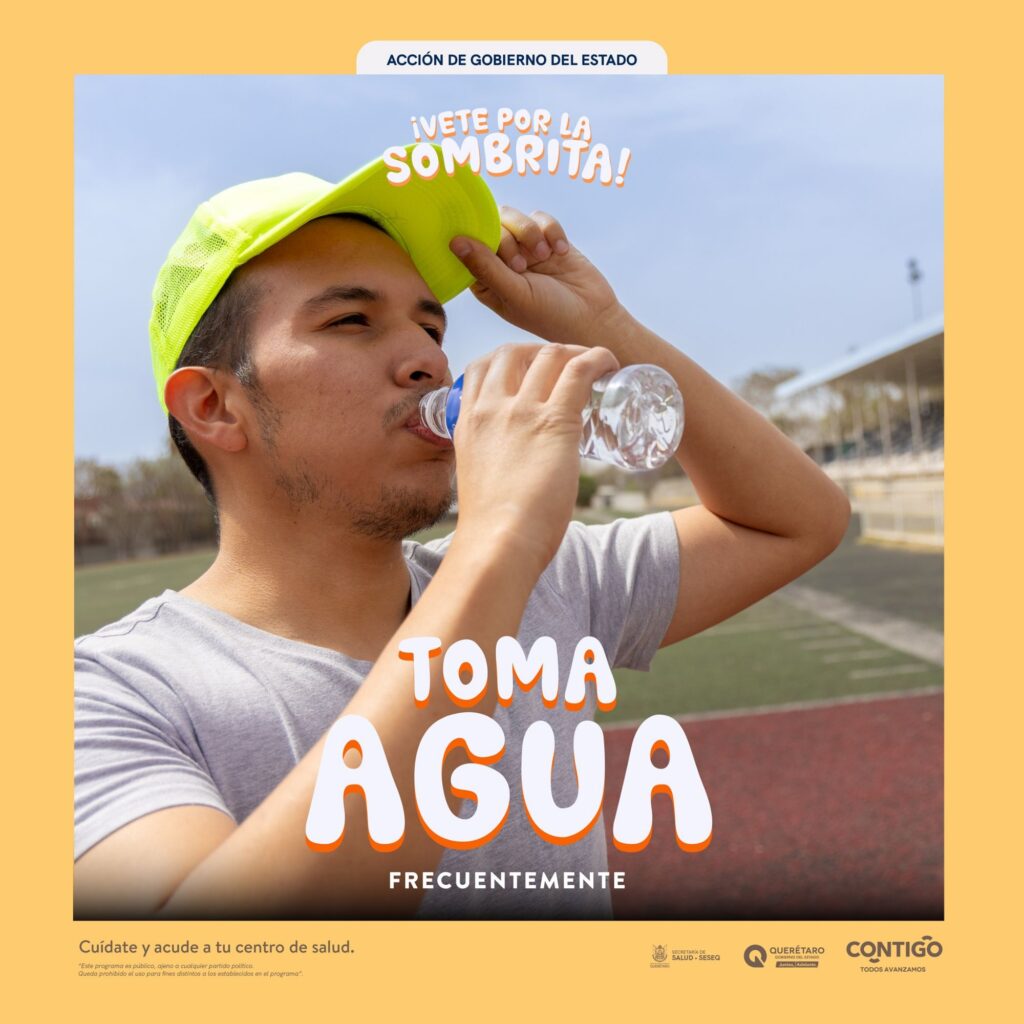 La Secretaría de Salud (SESA) del estado de Querétaro invita a la población a reforzar las medidas de protección, así como la importancia de mantenerse hidratado e identificar síntomas y signos de golpe de calor o deshidratación con la finalidad de tratar a tiempo y evitar complicaciones.